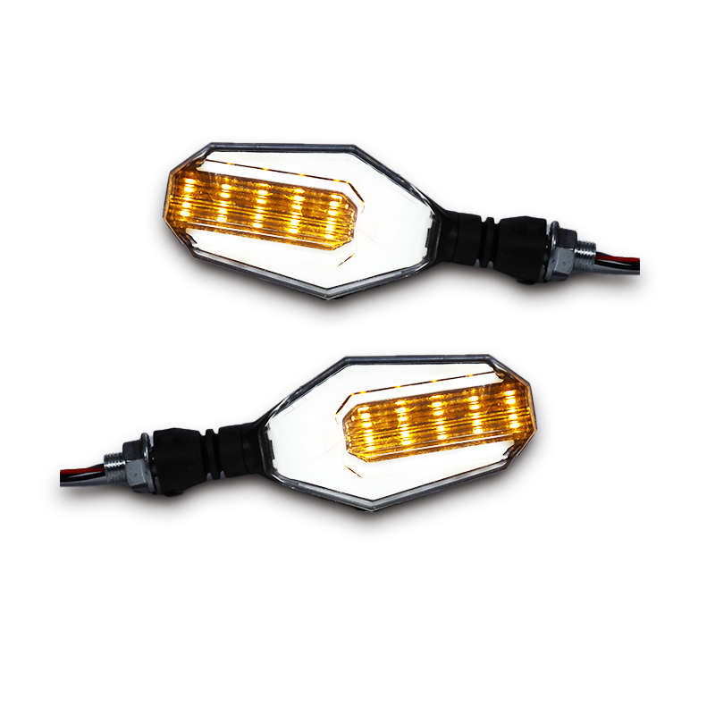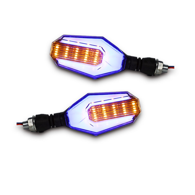 Dual-Color Lighting – Amber for turn signals, blue for accent style.